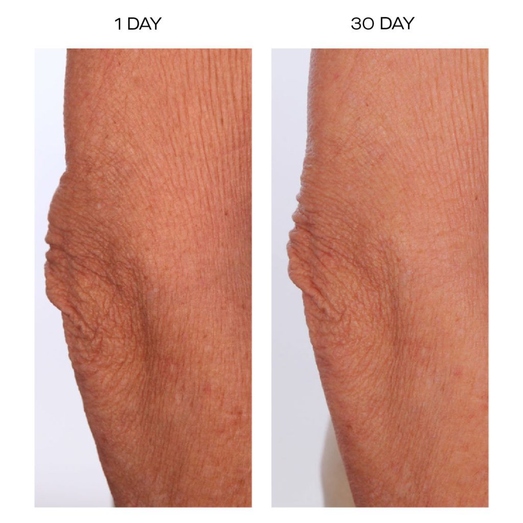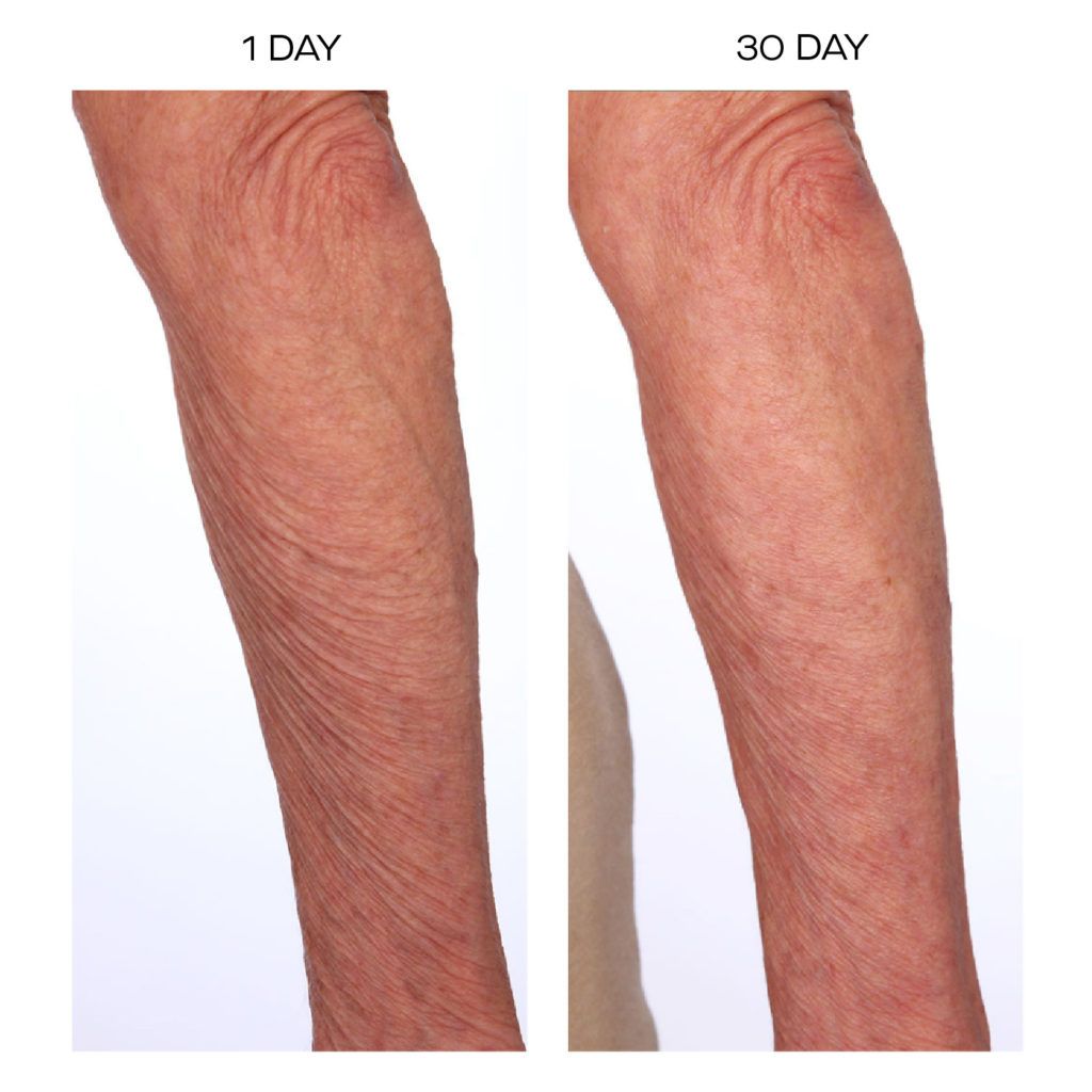 While Craig doesn't claim that the serum will serve as a substitute for the gym, she does have the clinical trials to back up the fact that, when users combined SCULPT with daily exercise, they saw more than double the results in visible firming as compared to the group who only exercised or used the product as a standalone. These are more compelling stats from the study: After 30 days of use, participants experienced up to a 48-percent increase in skin elasticity, which was measured in the lab. There was also a 167-percent increase in collagen expression and a 242-percent increase in elastin expression.