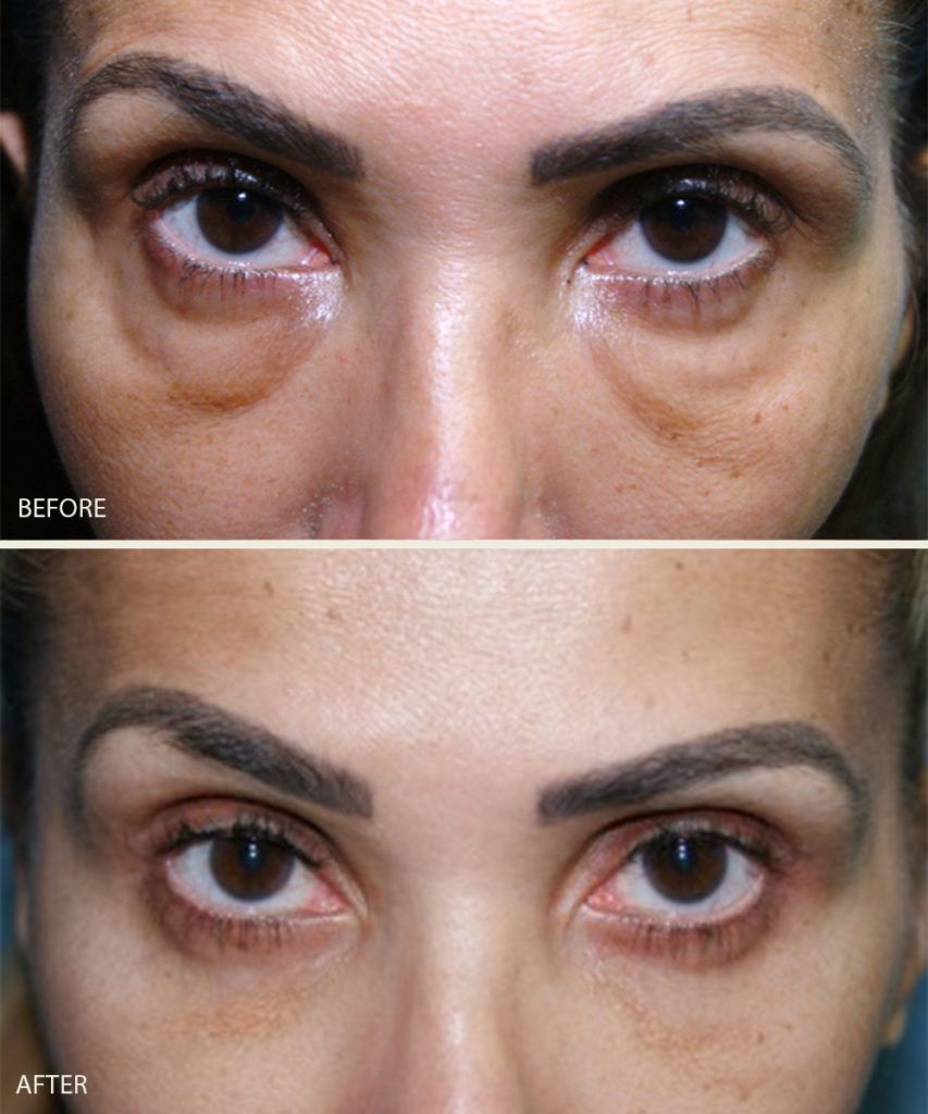 “When you correct dark circles with fillers, there is an attempt to temporarily inflate the perceived depression to allow light to reflect in this region to improve the appearance,” he explains. “When you look at young, beautiful women, however, there’s usually a slight concavity that begins near the eyelashes and continues as a gentle slope towards the cheek. As we age, we lose this natural slope and shape. Fillers might make things look a bit better but they can create many issues including visible product and long-term swelling that can be difficult to correct. Many patients tell me that their first injection seemed to improve the situation but ended up appearing worse with time or after repeated treatment.”
