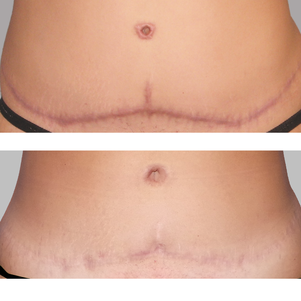 his 29-year-old patient was unhappy with an abdominoplasty scar from a previous surgeon, so Miami plastic surgeon Sean Simon, MD used multiple Picosure Focus Laser treatments to diminish its dark, uneven appearance.