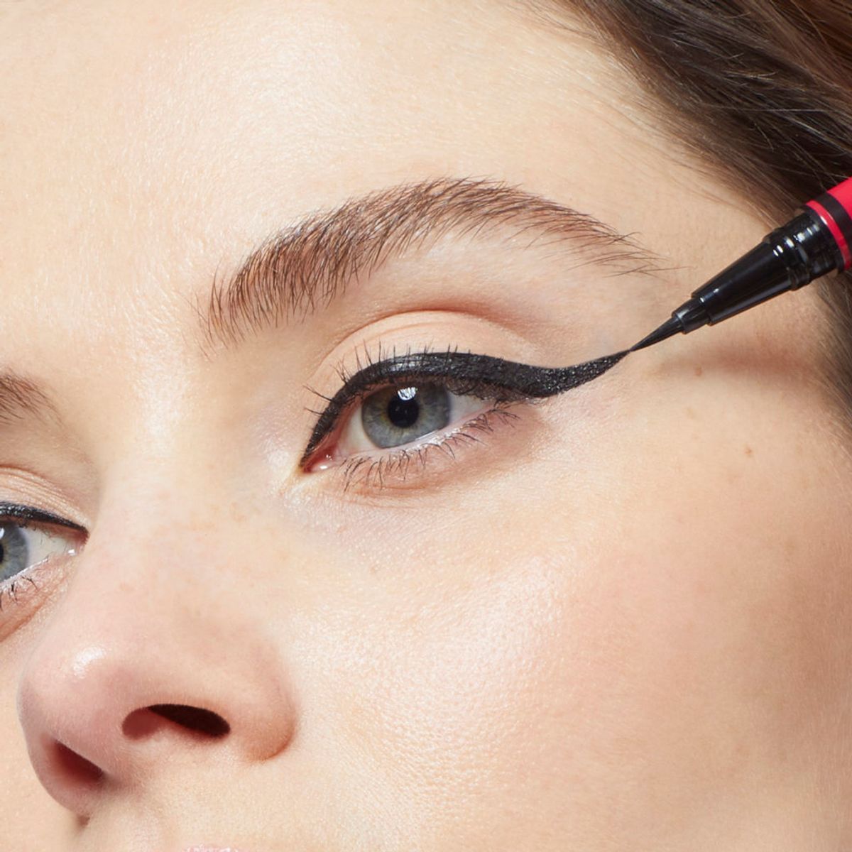 And for those who are a little more confident with liner and want to create more of a statement, Valentino recommends applying both the liquid and gel liner side by side in your crease. The precision tip also allows you to more easily draw a dramatic, oversized wing, which would make quite a fun statement as well.
