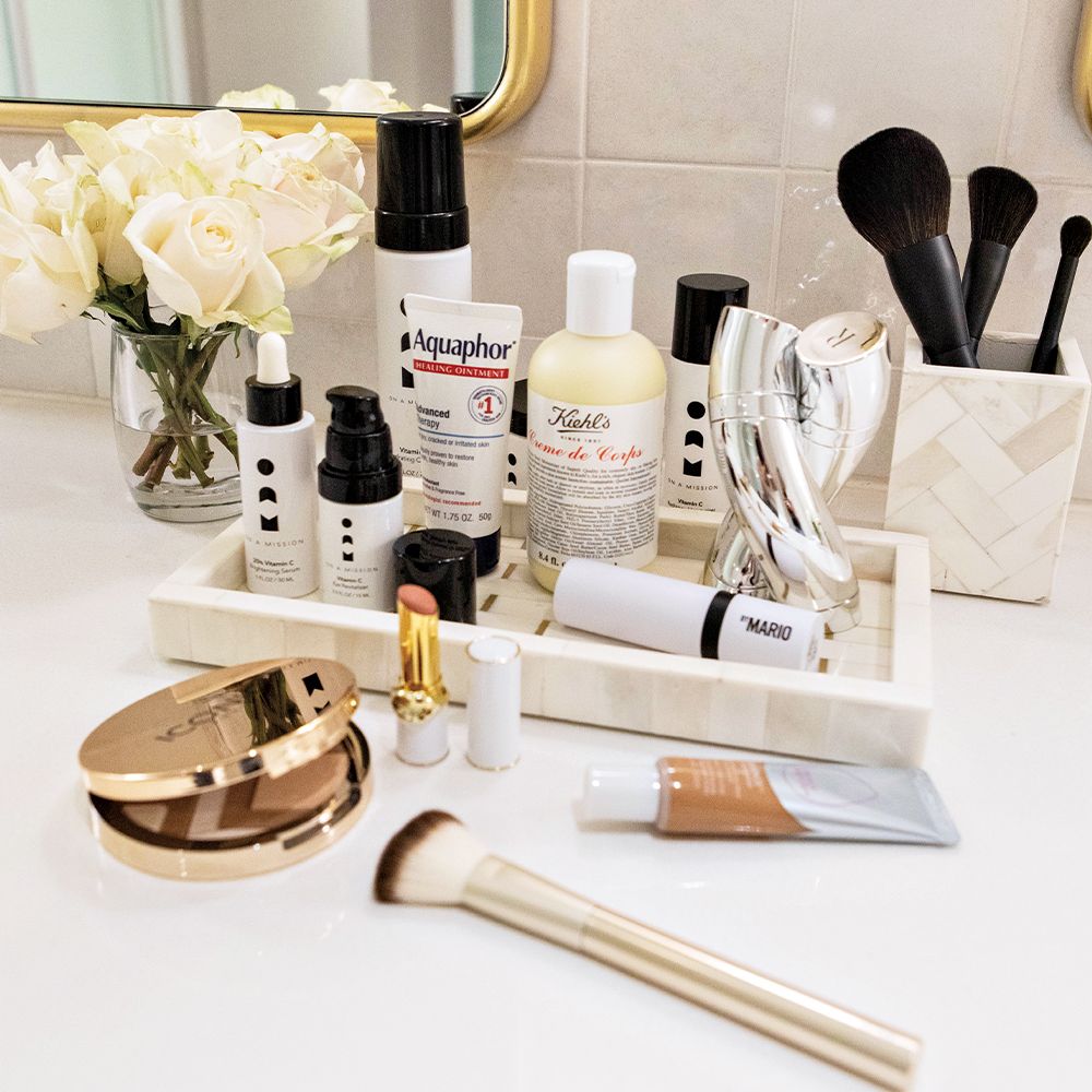 “Kiehl’s Creme de Corps ($24) is a staple! I apply it after I shower, and it leaves my skin feeling soft and moisturized. I love that it’s thick, but it absorbs well and isn’t sticky. I’ve also been using Aquaphor for years, on both myself and my babies. I swear by it! It’s a great moisturizer for my lips and hands, but I can use it pretty much anywhere on my body and it makes my skin better.”