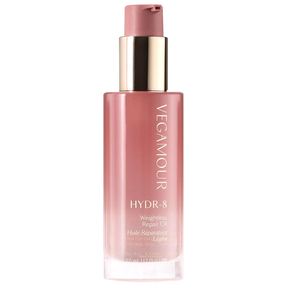 The formula brings together marula oil, vitamin C oil and a blend of sacha inchi and chia seed oil to add shine, improve split ends, nourish hair and protect it from free radicals. The "virtually weightless," fast-absorbing oil isn't weighed down by silicones, and never leaves hair slick or greasy. To see best results, start with a small amount, rub hands together to evenly disperse the oil and run hands through damp or dry hair from mid-length to ends. (The brand recommends one pump for fine hair, up to two pumps for medium hair and up to three for thick hair.) Per the brand, HYDR-8 Weightless Repair Oil adds 96% more glossy, natural shine and a 92% reduction in breakage.