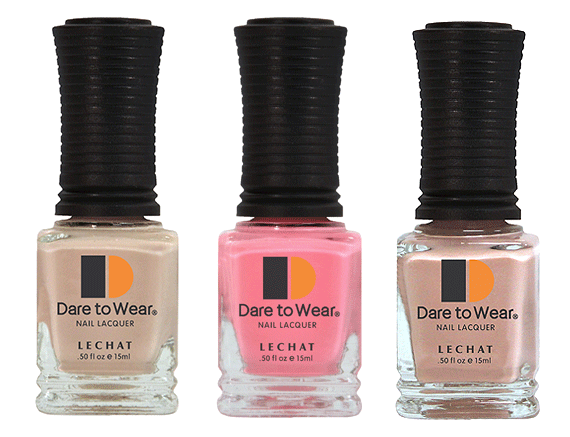 On the nails, lead nail artist Hien Pham went with a short, oval shape and either LeChat Dare to Wear Innocence or LeChat Dare to Wear Just Breathe for a chic, neutral look, and models for VS PINK wore a perky bubblegum shade from the Dare to Wear line called True Honesty to match the collection’s bright, playful vibe.