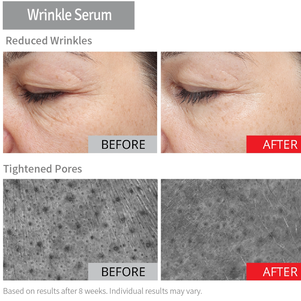 Though the science is complex, application of this age-defying, radiance-increasing product is simple. All you have to do is pump two to three pumps of Wrinkle Serum onto your palm, mix in a dime-sized amount of FACE brightening, and smooth the mixture onto a clean face and neck. For best results, the brand recommends use in both the morning and at night.