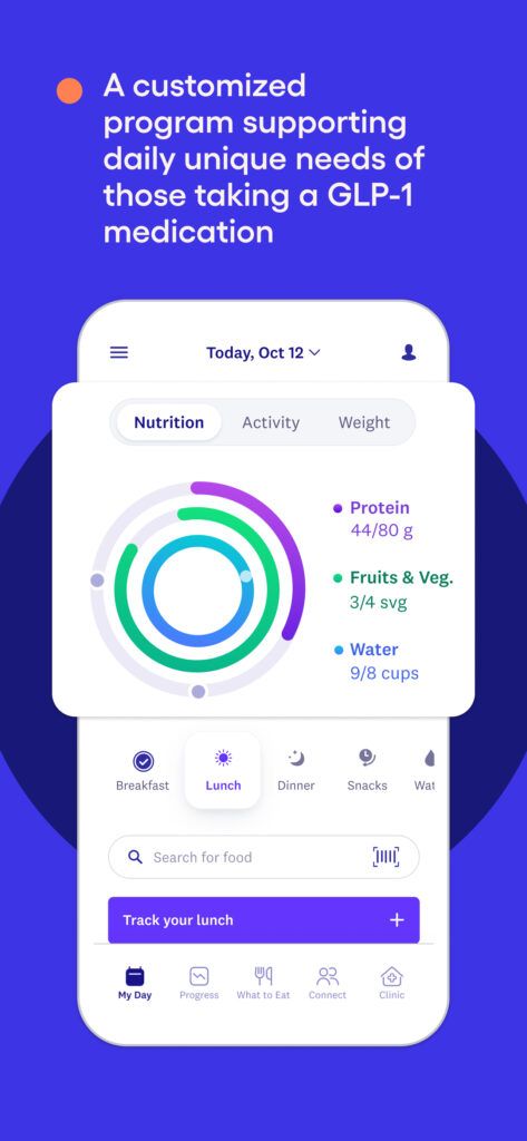 Members using the GLP-1 program will track three daily nutrition targets and complete the rings— protein, fruits and vegetables and water intake–through the WeightWatchers app. The personalized protein target adapts as members lose weight, ensuring a gradual approach to the recommended daily intake.