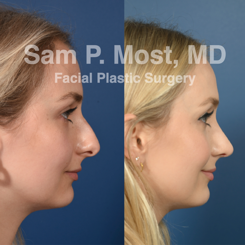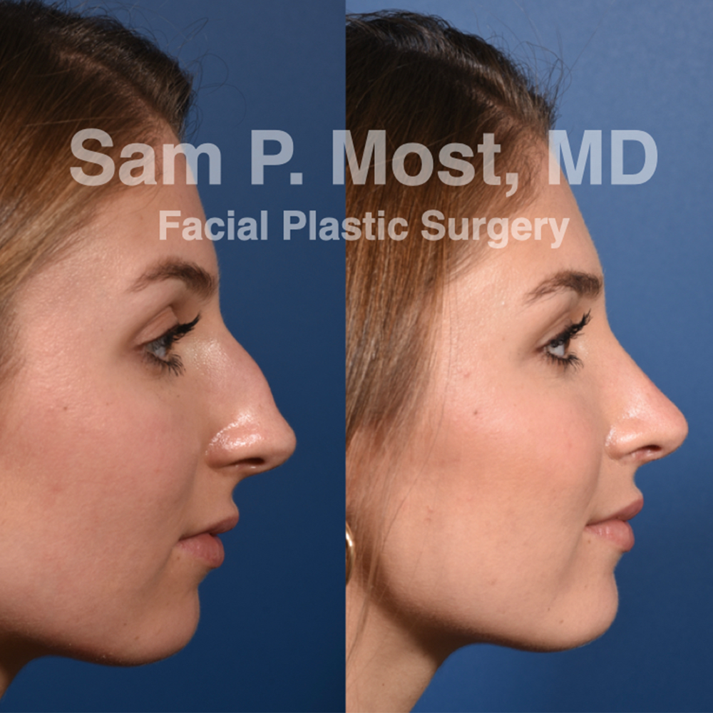 According to Dr. Most, the best candidates for “preservation rhinoplasty” are those with an attractive nose shape from the front and a dorsal hump that is not overly crooked. “The typical way this is addressed is that the surgeon will cut the top of the hump from inside the nose, break the bones and squeeze it all together to make it look normal again,” he explains. “So, if somebody has a nice-looking shape to their nose, rather than cut the top off, we do a “preservation rhinoplasty,” where we actually cut on the backside of the nose where it meets the face and push the whole thing into the face to make it flatter.”