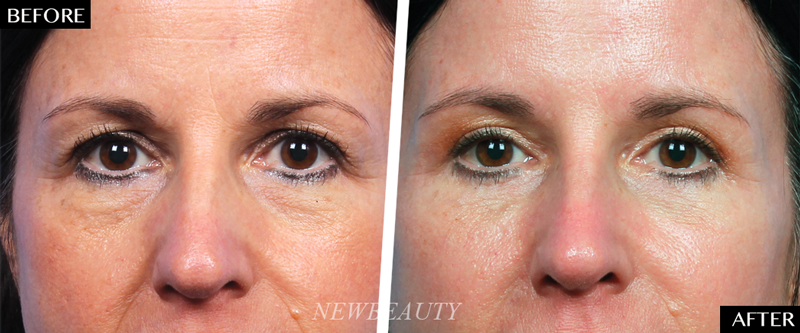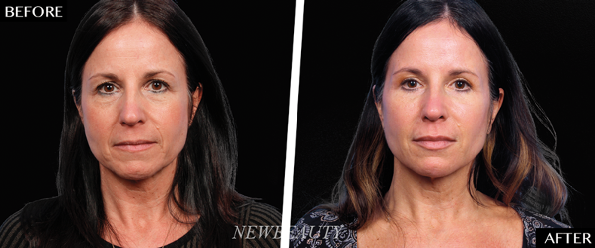 The side-by-side photo comparison came courtesy of Scottsdale, AZ facial plastic surgeon Kelly Bomer, MD, who Luciano made an appointment with based on a NewBeauty recommendation. As part of Dr. Bomer’s consultation, she displayed the photos on a screen and discussed both Luciano’s concerns and her options. Together, they decided the best course of action was an eyelift, or blepharoplasty, coupled with two full-face “liquid lifts.”
