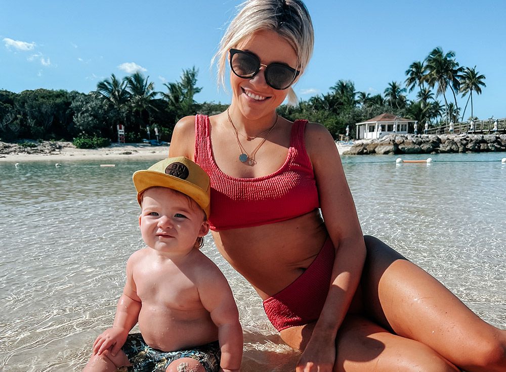 "For my face and neck, EltaMD has an amazing UV Restore Tinted SPF 40. I love this one specifically because as a working mom, I can’t fuss with a ton of skin-care products, and this one kind of serves as a moisturizer and a sunscreen, and it has a slight tint so it gives my skin that healthy glow. I also love the UV Daily because it contains hyaluronic acid so it’s super hydrating and I love how it feels on my skin. They also have a Lip Balm, and a lot of people forget sunscreen on their lips, but it’s absolutely the worst when your lips are burned, so it’s great because it’s SPF 36 and I feel like I put it on once and it lasts for hours."