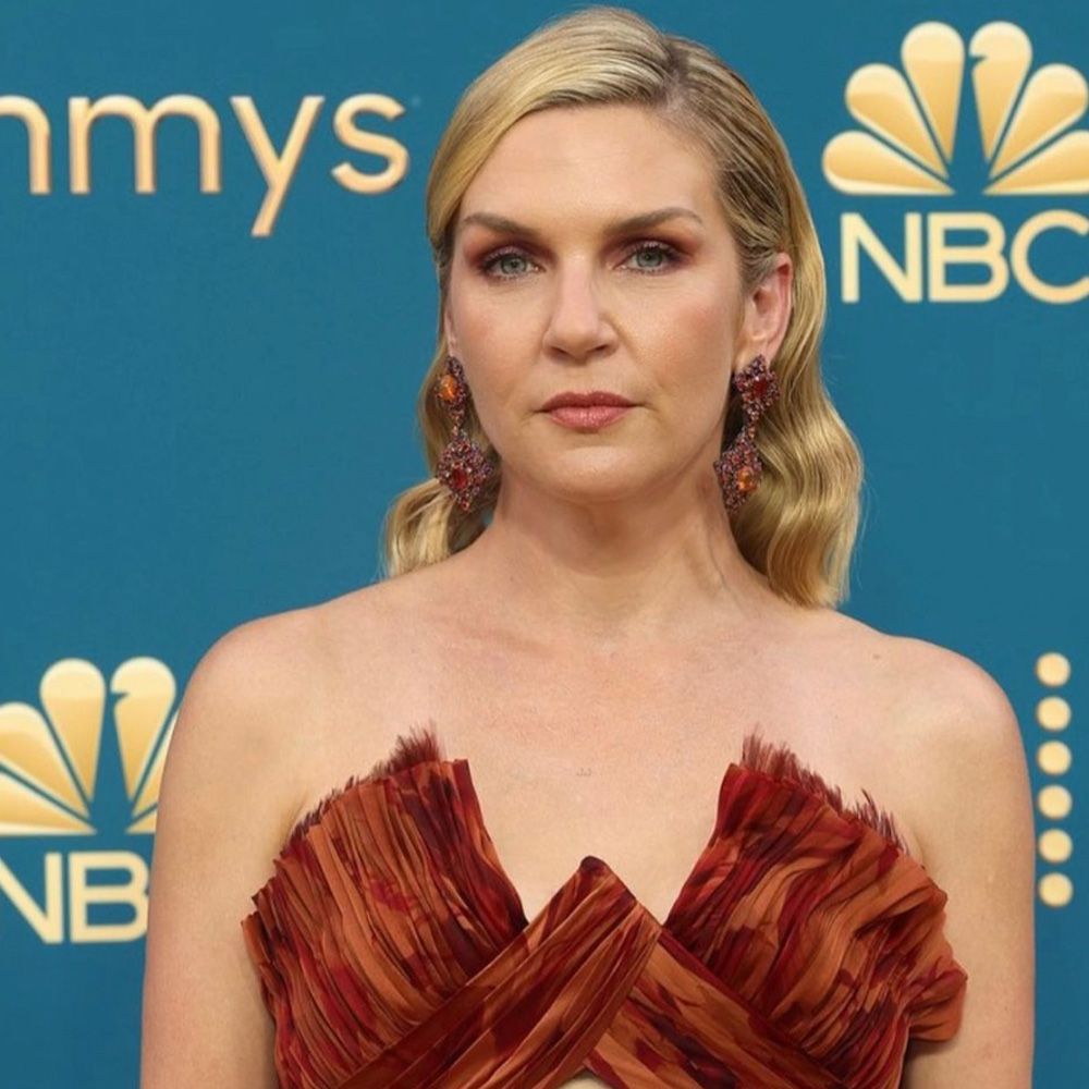 Emmy Award nominee Rhea Seehorn wore a warm-colored gown with a perfectly placed cut-out. She paired it with her shoulder-length hair slicked back featuring chic wave. Her skin was prepped with an array of Kat Burki products. The subtle smokey eye paired well with the dress, and the nude lip was turned up just enough.
