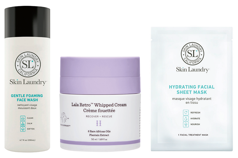 “After cleansing again with Skin Laundry Gentle Face Wash, I apply Drunk Elephant Lala Retro Whipped Cream ($60)—the fermented green tea in it helps combat any environmental stressors on my skin. And whenever my skin feels dry or needs a little extra boost, I use a Skin Laundry Hydrating Facial Sheet Mask ($10) before bed. I also stash some in my suitcase when I travel because they’re super light and easy to put on—even on the plane!”